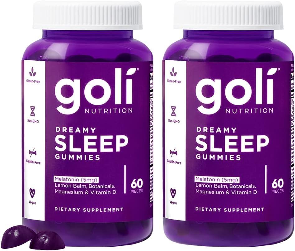 Goli Dreamy Sleep Gummy – 180 Count – Melatonin, Vitamin D, Magnesium, and Lemon Balm Extract – Gelatin-Free, Gluten-Free, Vegan & Non-GMO(5mg Sleep)